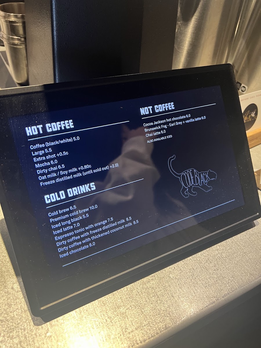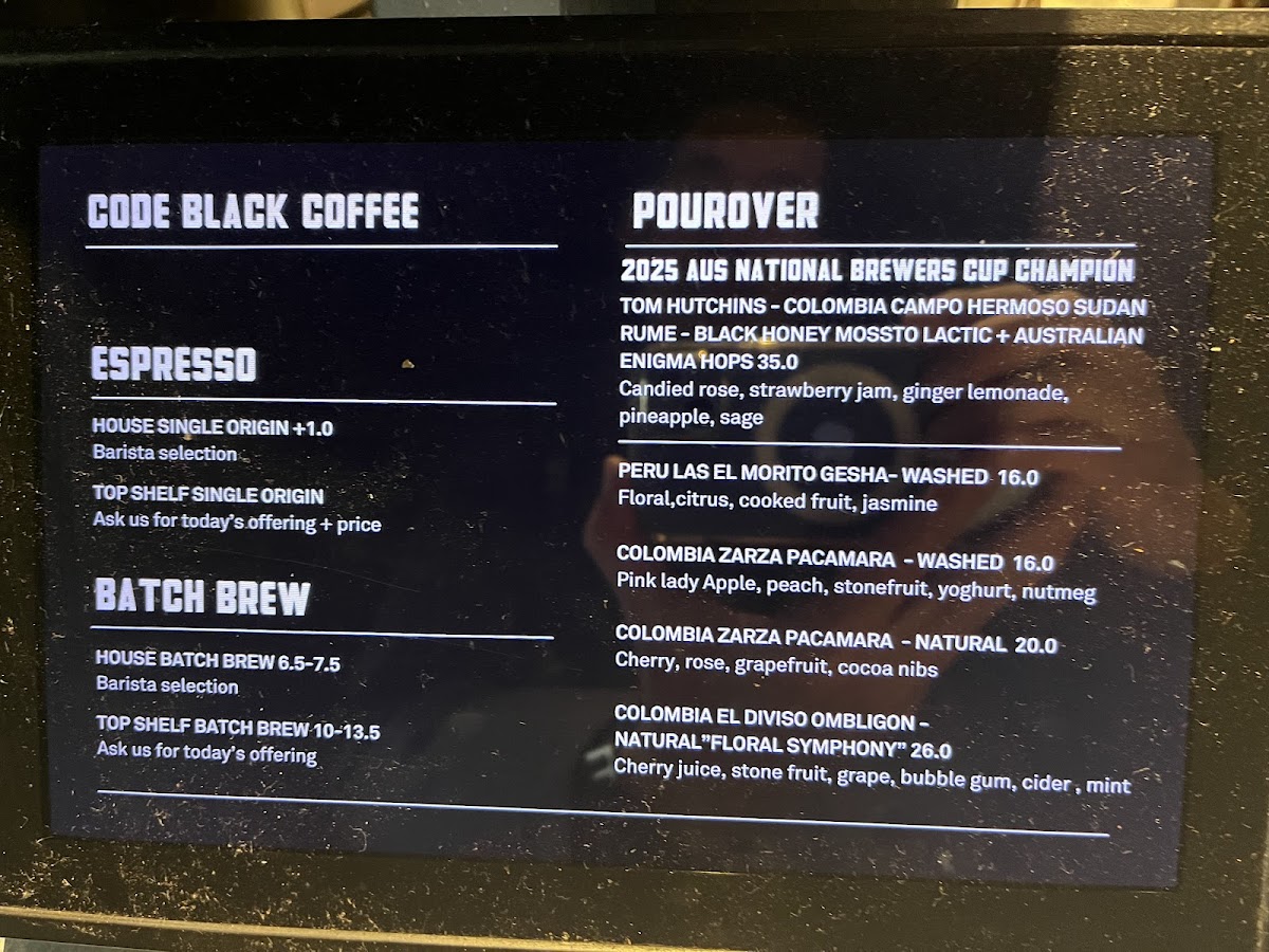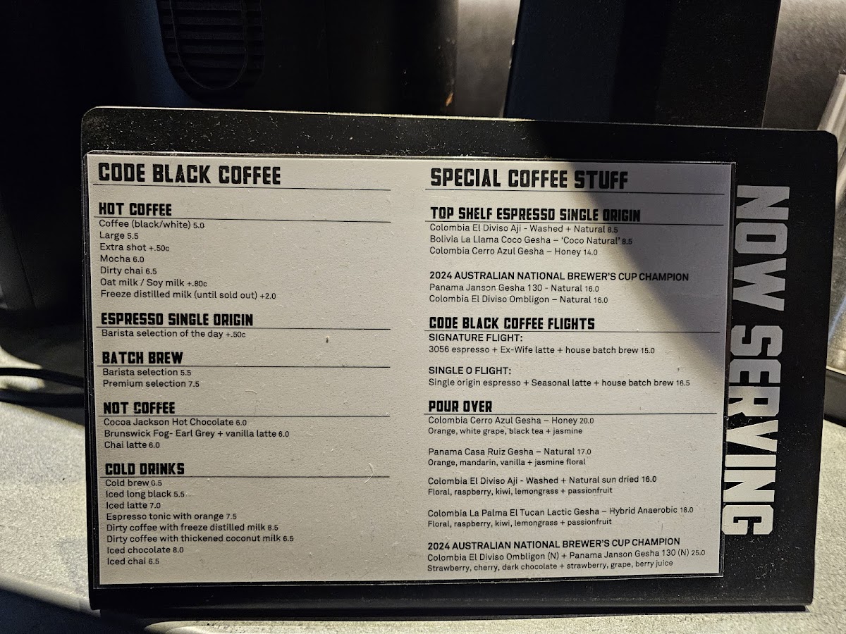 Code Black Coffee Spencer Street Menu